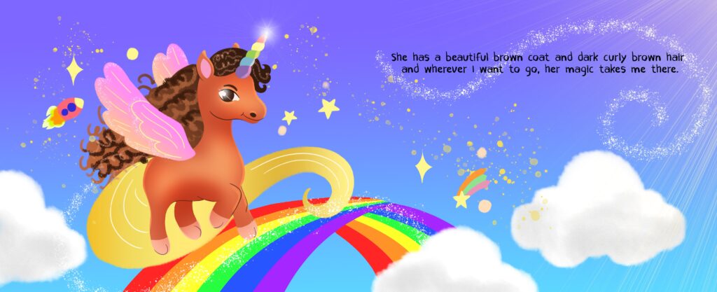 My Magical Brown Unicorn My Magical Brown UnicornThis is the first book of My Brown Unicorn Book Series. Kam is a little girl and curios about whimsical fairytales. She starts a magical adventure with her unicorn friend. Copyright © 2023 All Rights Reserved